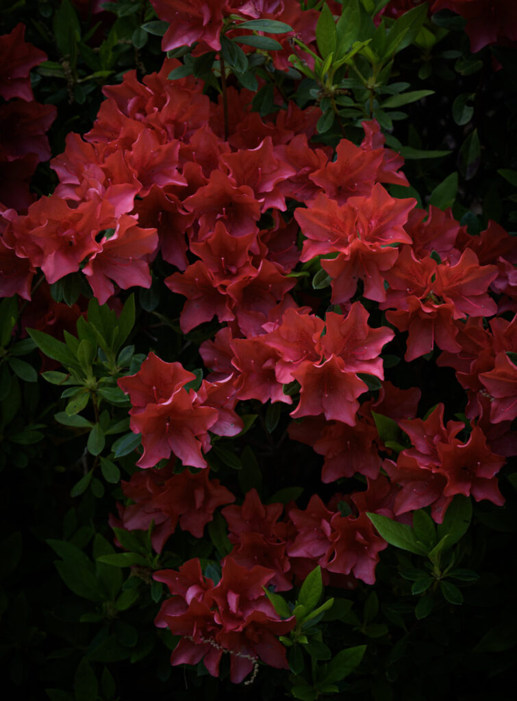 赤が美しいつつじは少し暗めにレタッチして深い色を強調しています