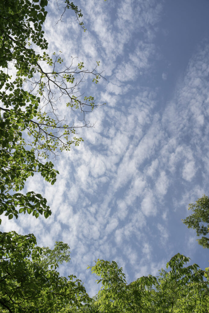緑の葉の額から見える空も雲の表情が素敵でした。
