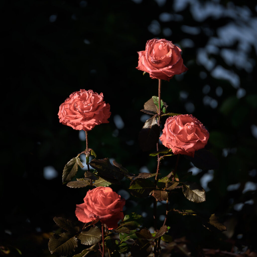綺麗に4輪並んでいい絵だなと思いパシャリ。花を見ていると自然に咲いている中に、面白いバランスだったりとか物語に繋がる配置だったりを探しながら撮るのが自分らしさが表現できると思っています。