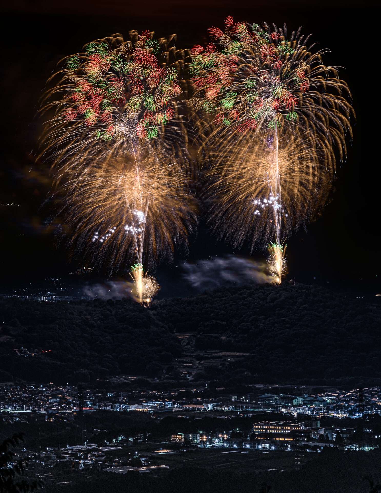 2箇所から打ち上がりシンクロする