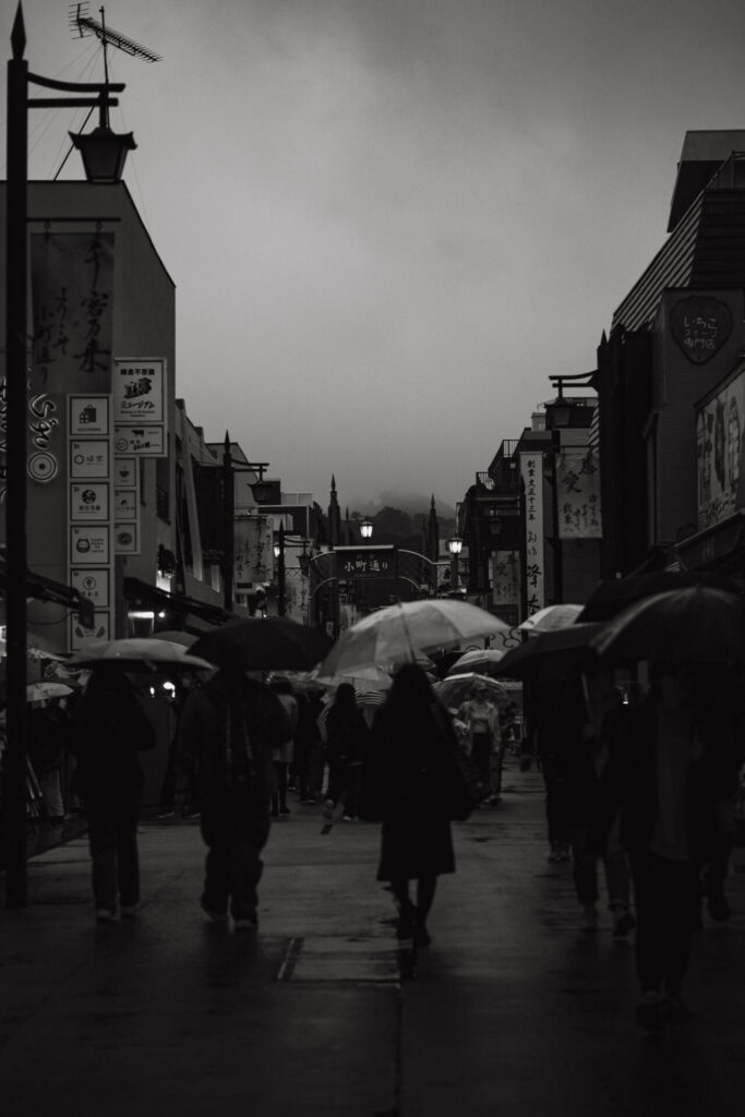 小町通りは傘をさすたくさんの人で賑わっていました。