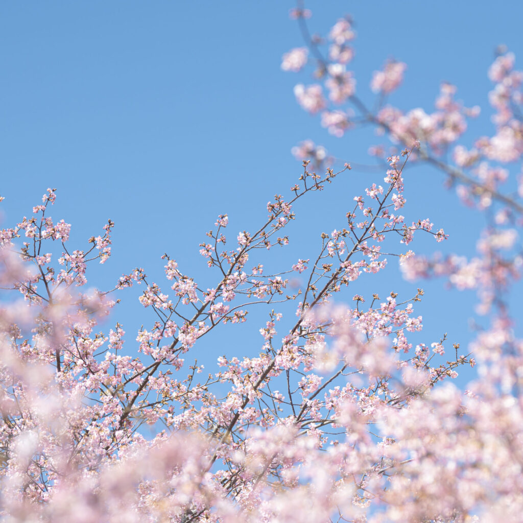 青空にピンク色が綺麗にマッチする一枚、桜と青空は色の組み合わせがすごく好きです。