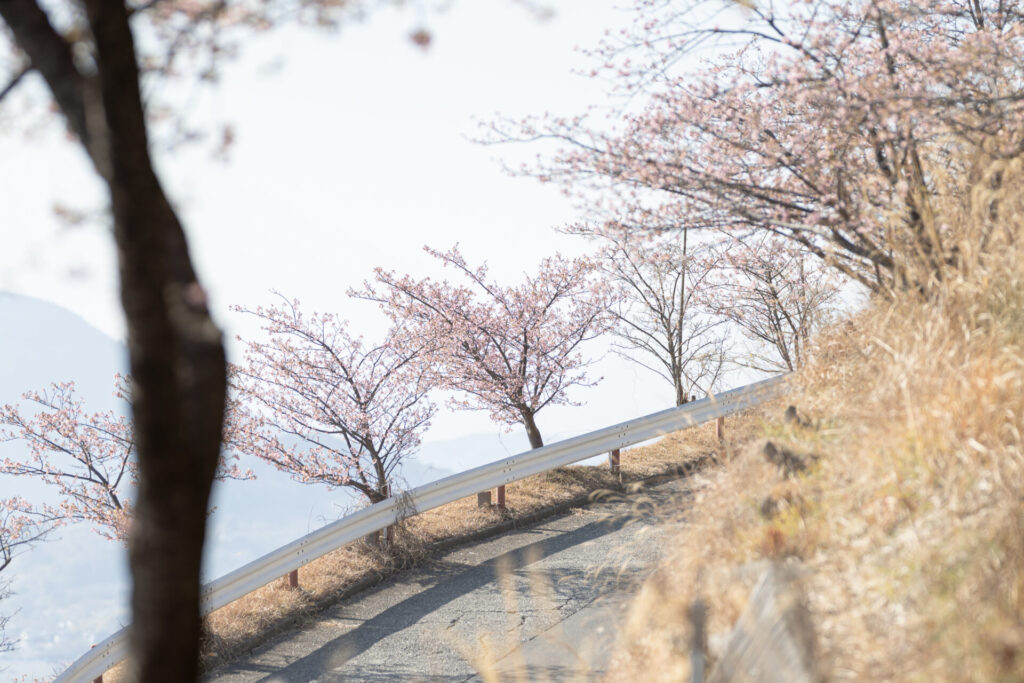 桜も写真撮るの難しいお花ですよね。離れて撮っても細かい花が写るだけで後で見てみてもイマイチだったり、ここでも構図の考え方がすごく重要だと思います。上の写真は密集を写して満開の桜を表現して、逆に下の写真は隙間はあっても、カーブ沿いに均等に並んだ桜が落ち着いて絵になっていると思います。