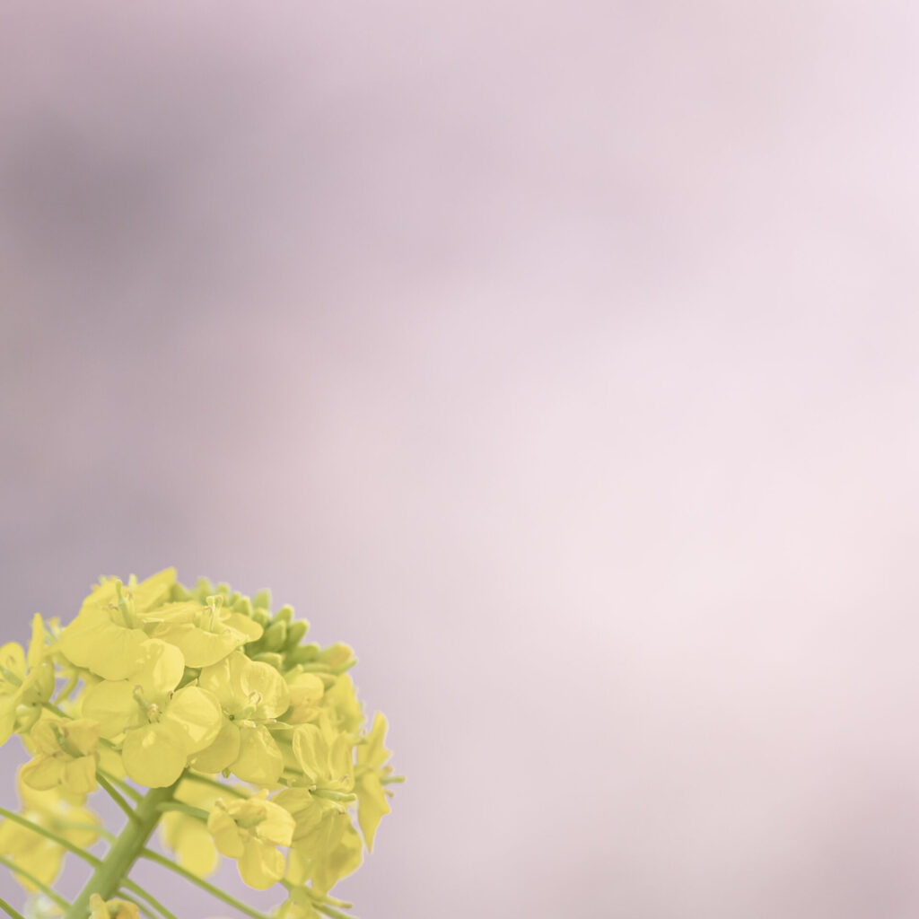 例年より菜の花が少なく少ししか見れませんでしたが、黄色とピンク色のハーモニーが美しい写真も撮れました。背景を桜のピンク色でボカしてもいいですし、逆に菜の花の黄色を前ボケに使っても素敵ではないでしょうか。
