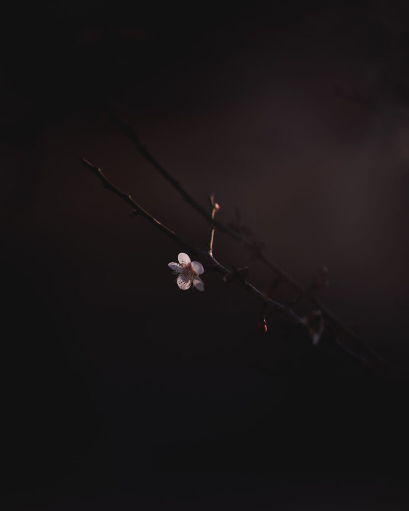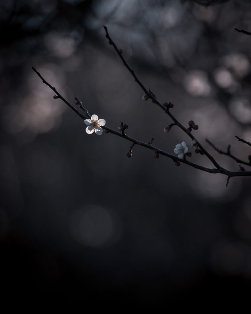 少し寂しい雰囲気がローキーの一輪の梅にマッチしていると思います。