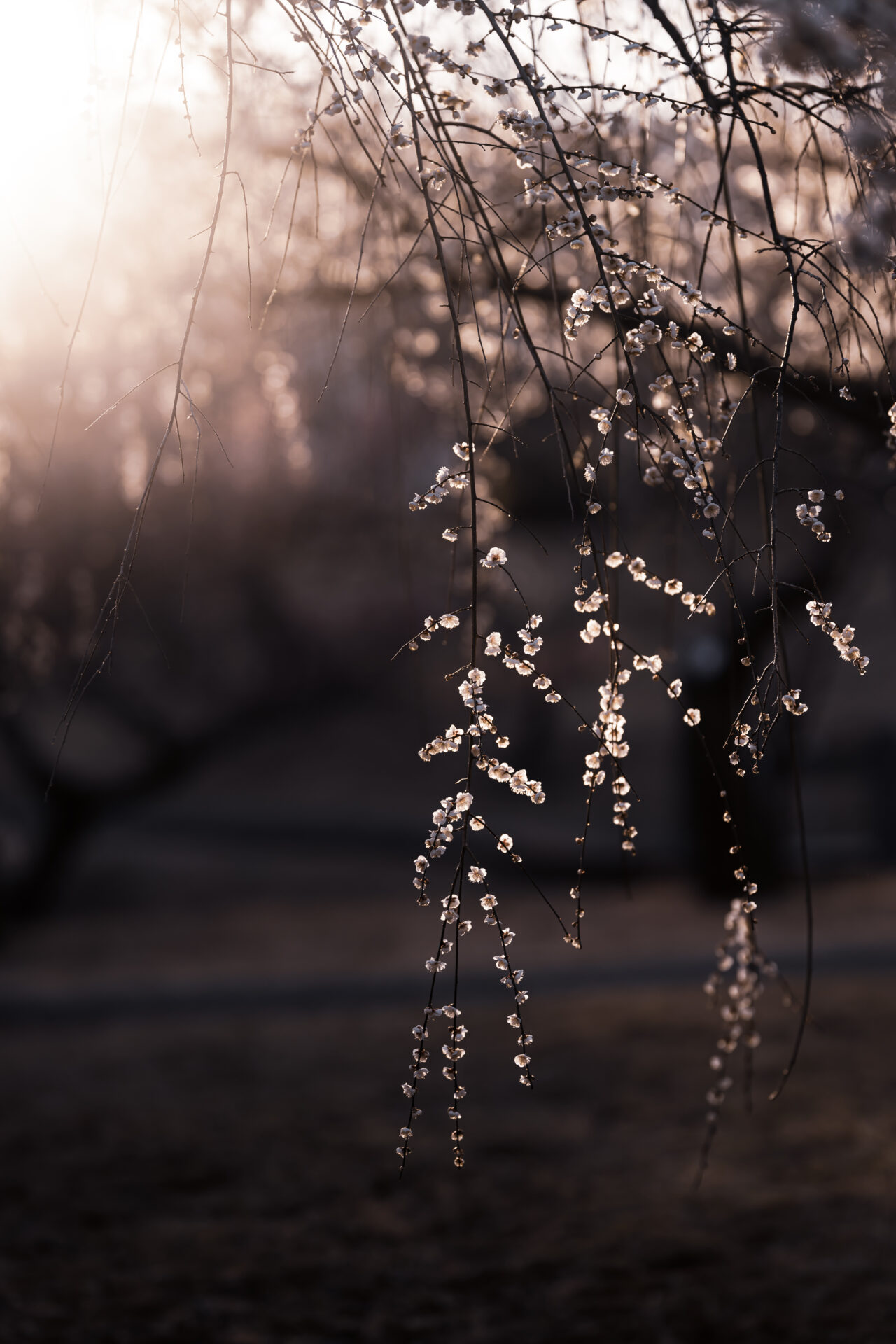 小さい花が枝に無数に咲く梅は玉ボケを表現するのにすごくいい。白い花はまるで雪のようにも見えます