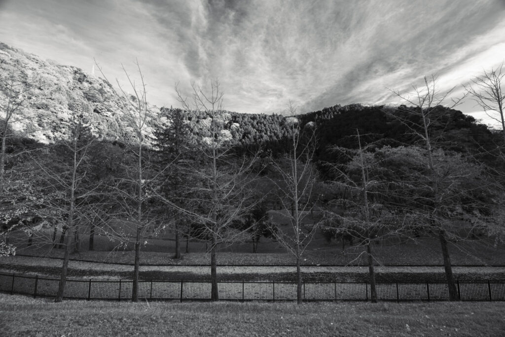 公園を散歩広角レンズを活かして手前を大きく奥行きを出して